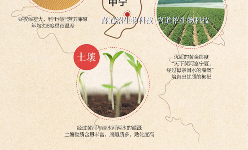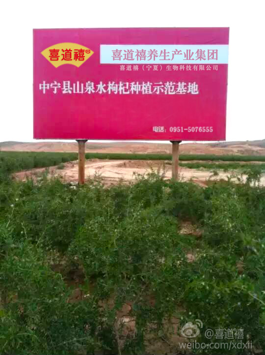 喜道禧(寧夏)生物科技有限公司前期,從2009年開始進行有機枸杞種植,喜道禧前身公司已投資600多萬元,采用土地流轉、公司加農戶合約等形式在中寧、涇源等地建立有機枸杞種植基地1336畝。