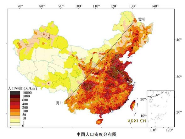 中國地理學家胡煥庸曾經在地圖上用一條分界線將中國東、西部劃出,世界稱之為“胡煥庸線”,按照分界線來看中國東部占全部國土面積的43.2% ,但生活著、承載著全國94.4% 的人口。