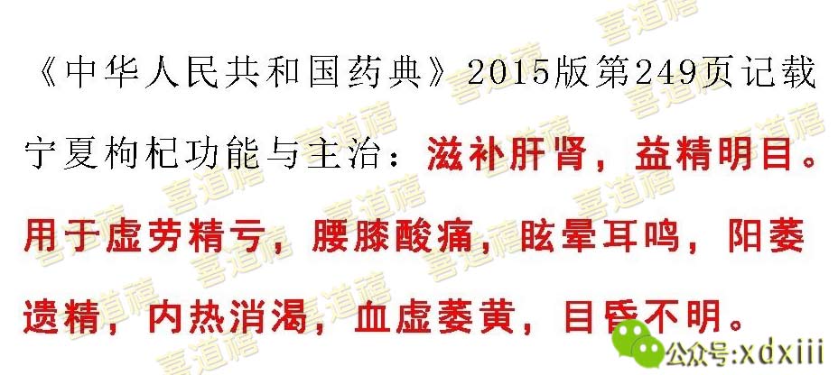 ?《中國藥典》中規定:唯寧夏枸杞才可入藥,入藥枸杞為寧夏枸杞干燥成熟果實,其功效為保肝、明目、補腎、益精。
