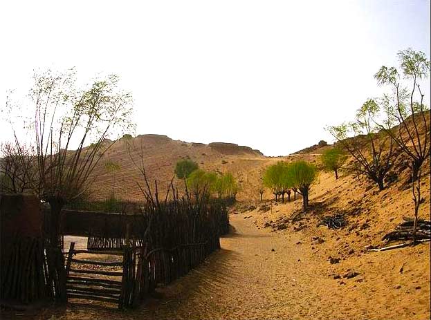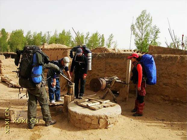 動物足跡,隨尋蹤覓跡,水可得?;蚋鶕?jù)植物判斷,有葦之地,1~5m以下有 水;葦茂之地,1m左右有水;芨草之地,水在地表下2m左右;檉柳胡楊等處,6~7m深處有水;有胡楊林生長之地 ,水距地表5~10m余。此外,牧民棄圈或有水源,有井之地,牧民皆磊石標(biāo)記。