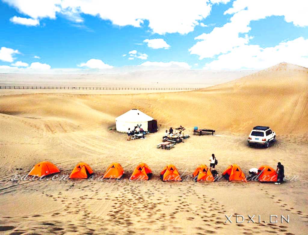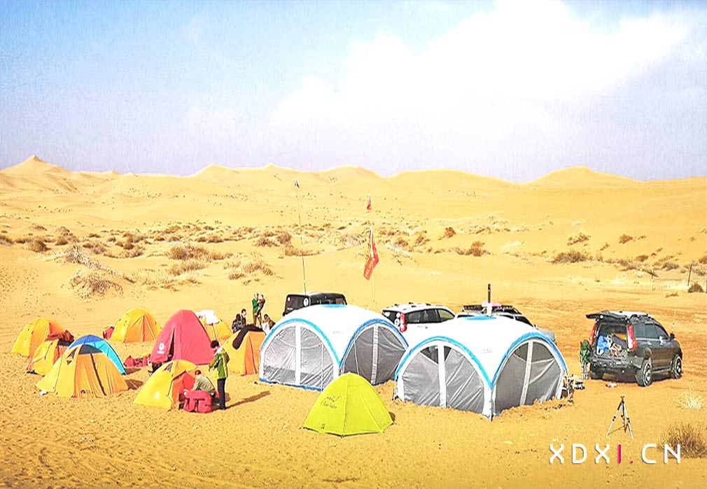 去年五一,騰格里突降大雪。當(dāng)時喜道禧公司員工組隊一行有備而至,公司 保障車攜帳八頂、睡袋八條、油爐兩臺、美食多樣,隨行越野車三輛。