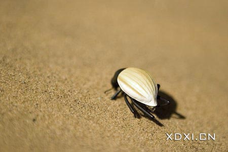 沙子里,它鉆出沙子后向前滾動著身子,要么向一側(cè)蠕動前行。