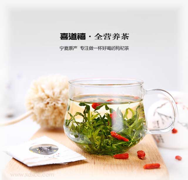 喜道禧枸杞茶味甘苦性涼,入心、肺、脾、腎四經,因不含有普通茶葉中的咖啡堿、可可堿、茶葉堿等令人精神興奮導致失眠的物質,經常飲用可起到養精安神、調節睡眠、補虛清熱、祛風止渴、明目解毒等作用。并且其中所含有的多酚類物質如兒茶素是普通綠茶的三倍,具有抗氧化、抗衰老、抗疲勞、調節血脂血糖、提高免疫力的作用,非常適合夏日飲用。