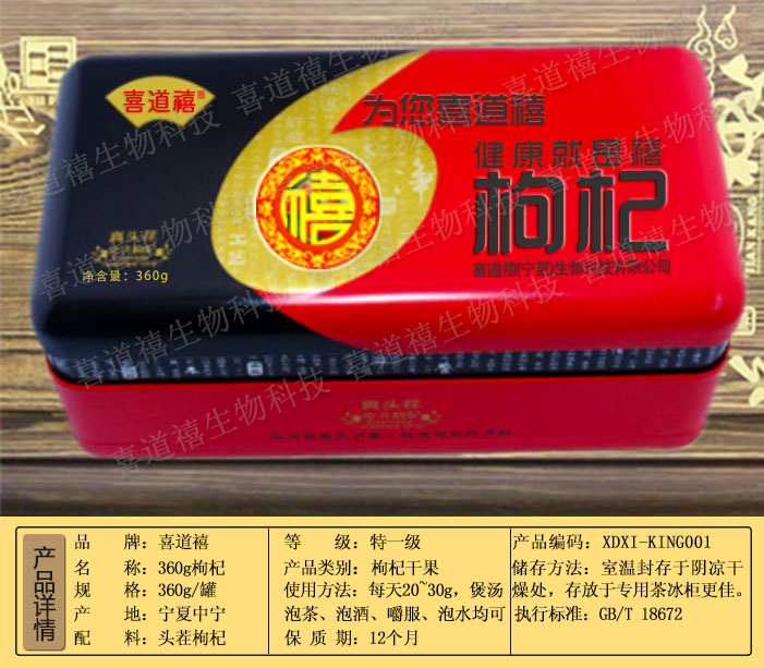 產品名稱:喜道禧360g頭茬禮盒枸杞